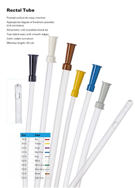 PVC rektaalikatetri suolihuuhteluun ja lääkkeenantoon.