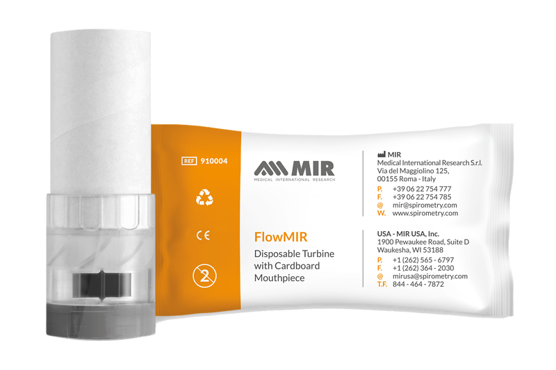 Kertakäyttöinen MIR flow turbine-suukappale MIR Spirobank Smart-laitteeseen.