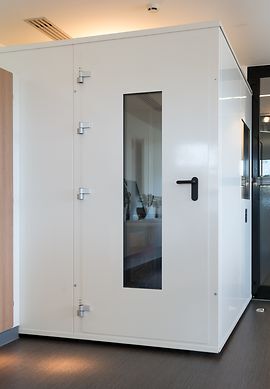Audicel-äänieriö on 1x1 m kokoinen, soveltuen pieneenkin tilaan.