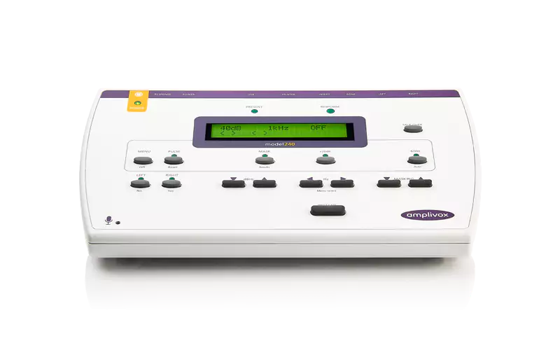 Audiometri Amplivox 240 on kustannustehokas ja helppokäyttöinen diagnostinen audiometri, joka sopii joko pöytälaitteeksi tai kannettavaksi laitteeksi.