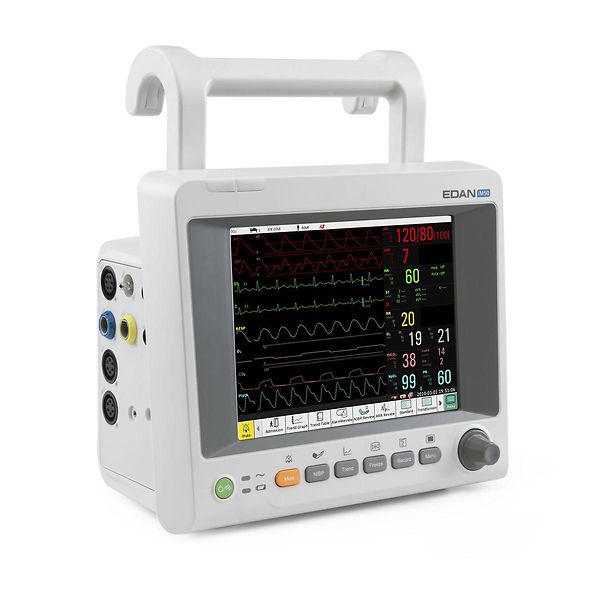 Laadukas EDAN iM50 potilasvalvontamonitori näyttää potilaan happisaturaation, EKG:n, ruumiinlämmön, pulssin ja hengitystiheyden.
