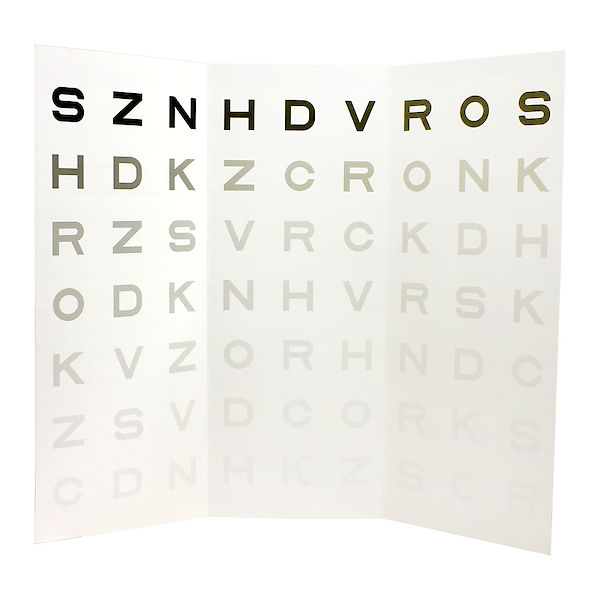 7-rivinen kontrastitaulu kontrastinäön testaamiseen. Taulussa 21 erisävyistä kolmen kirjaimen sarjaa. Testi suoritetaan hyvin valaistussa tilassa, mieluiten luonnonvalossa, joko 3m tai 40cm tutkimusetäisyydellä.