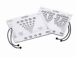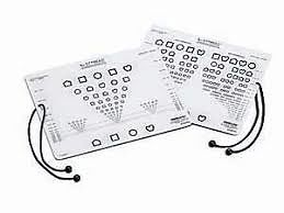 Lea Symbols -lähinäkötesti narulla. Tutkimusetäisyys 40 cm. Suhteellisesti sijoitetut rivit toisella ja tiheämmät rivit toisella puolella. Pakkaus sisältää ohjeet ja kuvakortit. Testissä naru oikean tutkimusetäisyyden saamiseksi.